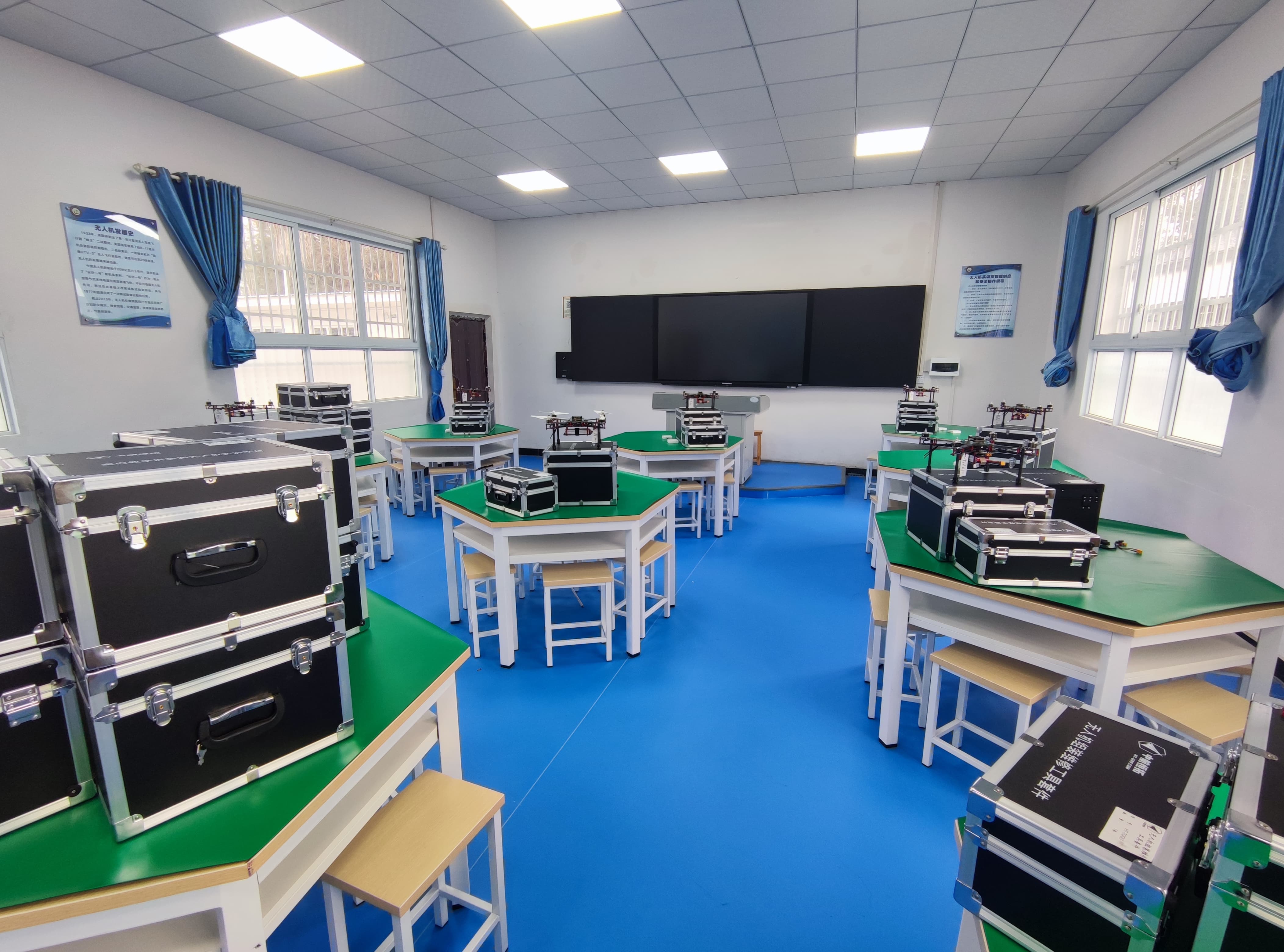 利川市民族中等職業(yè)技術(shù)學(xué)校建于1999年6月,是由原利川民族師范、恩施財校利川分校、利川民族職業(yè)高中、利川市高師函授站合并而成。學(xué)校占地145畝,建筑面積5.3萬m2,下轄兩個學(xué)區(qū),業(yè)務(wù)涉及中專、職高和成人培訓(xùn),擔(dān)負著利川86萬土苗兒女的職業(yè)教育重任。2023年2月,無人機實訓(xùn)室成立,實訓(xùn)設(shè)備包含拆裝調(diào)基礎(chǔ)型無人機教學(xué)平臺、人工智能雙目視覺科研型無人機競賽開發(fā)平臺、飛行實訓(xùn)無人機平臺、電子執(zhí)照考證無人機飛行平臺、航拍無人機教學(xué)平臺、無人機智能電池管理系統(tǒng)等設(shè)備、無人機安全飛行防護場地等,目前已完成師資培訓(xùn),設(shè)備已投入教學(xué)使用。