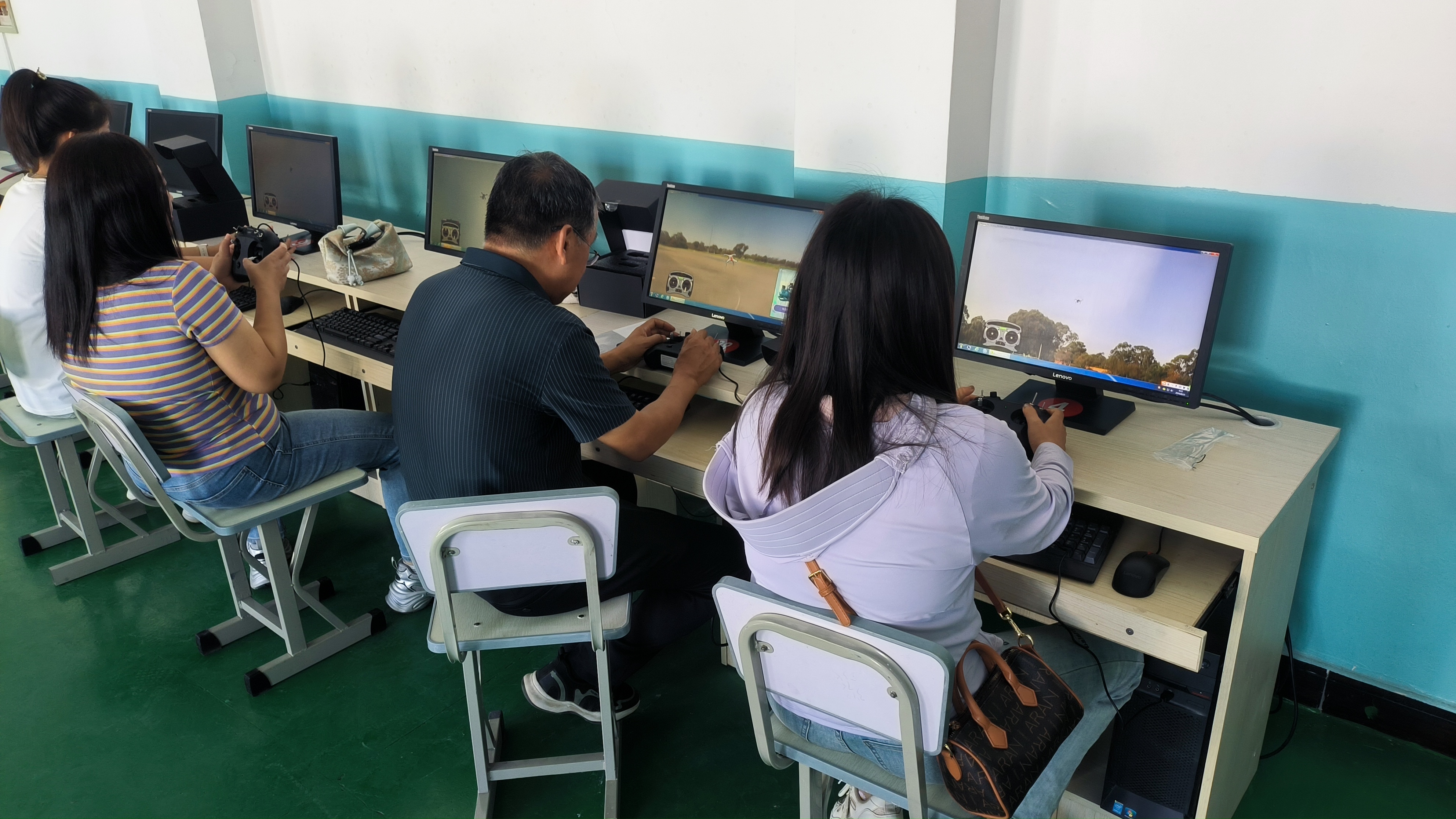 學校老師在模擬器上練習無人機飛行