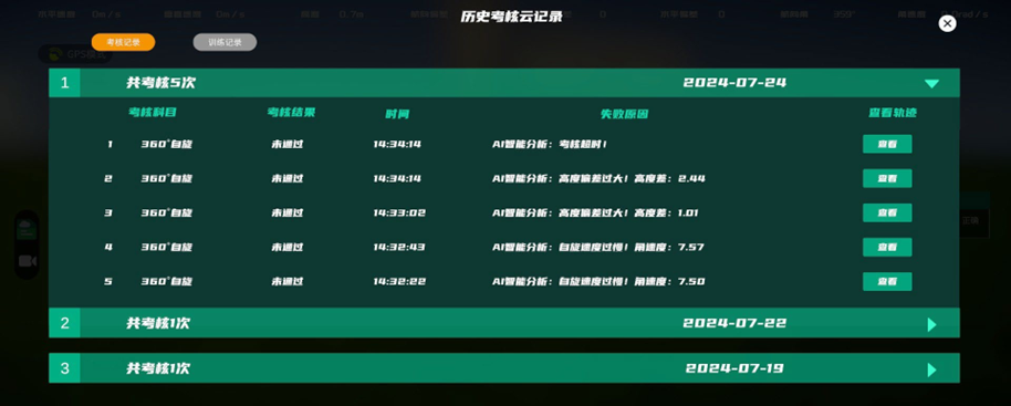 訓(xùn)練模式包含35個(gè)科目,可根據(jù)訓(xùn)練需求選擇合適的科目進(jìn)行訓(xùn)練,如定點(diǎn)對(duì)尾懸停、定點(diǎn)對(duì)頭懸停、定點(diǎn)對(duì)左懸停、定點(diǎn)對(duì)右懸停、定點(diǎn)自旋360度、完整水平八字等。