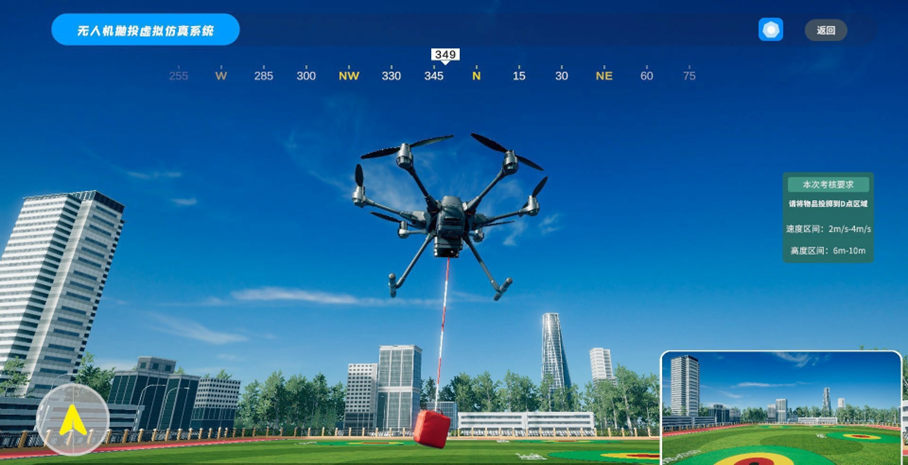 無人機(jī)投擲模塊通過操作無人機(jī)將物資投擲到指定位置的精準(zhǔn)訓(xùn)練,是后期水域救援模塊訓(xùn)練的基礎(chǔ)。